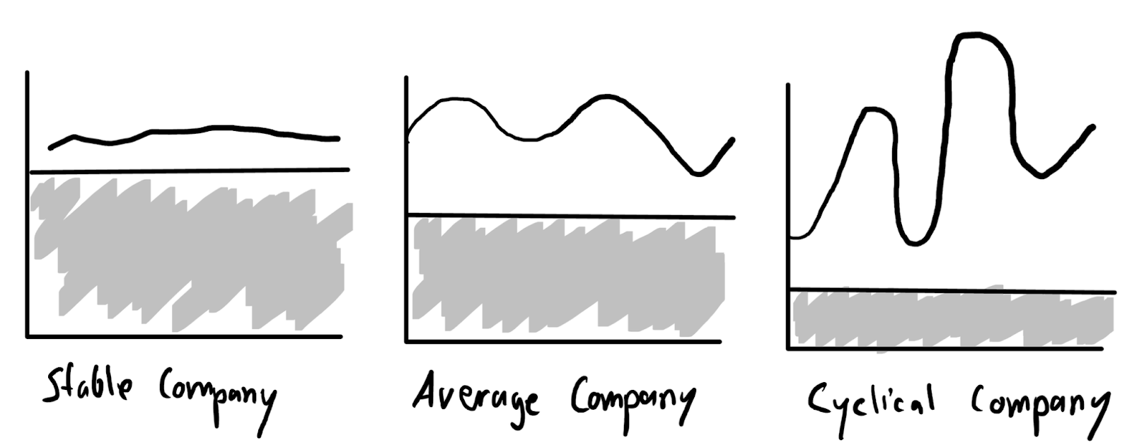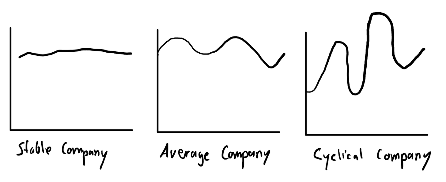 Howard Marks uses three types of companies: Stable, average, and cyclical companies.